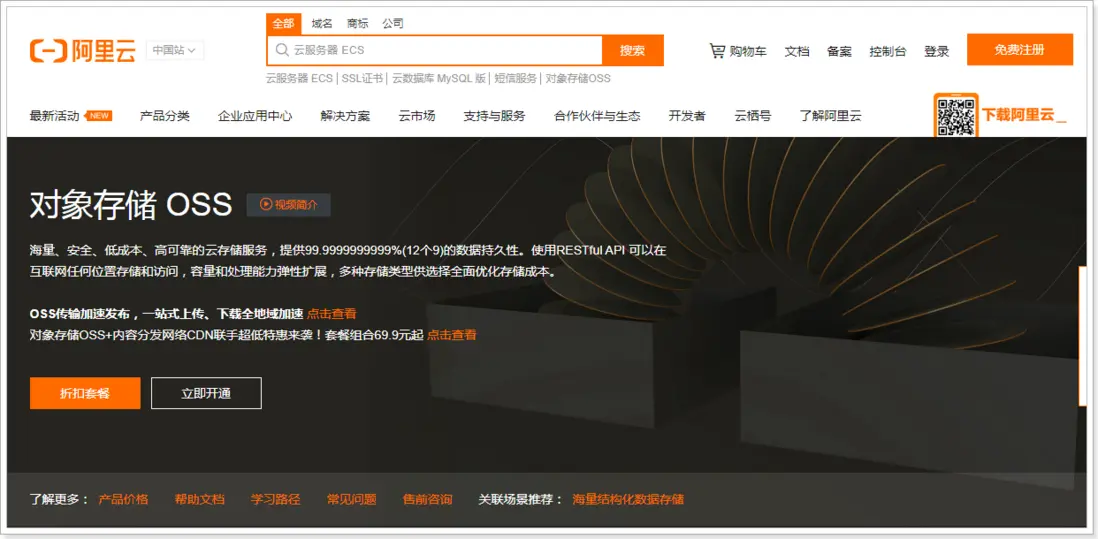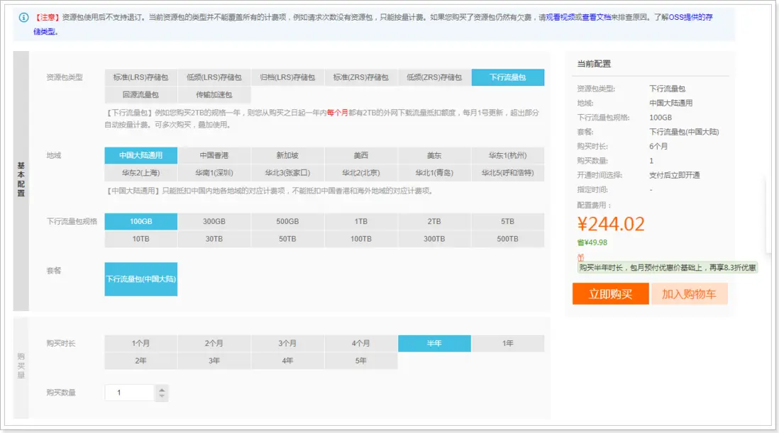 説明:OSS的上行流量是免費的,但是下行流量是需要購買的。