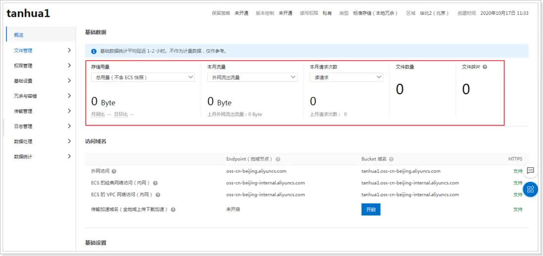 選擇Bucket後,即可看到對應的信息,如:url消耗流量等 :