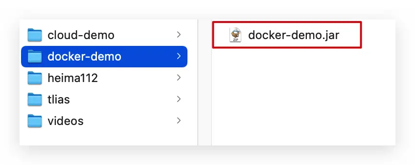 • 步驟2:拷貝課前資料中的docker-demo.jar文件到docker-demo這個目錄