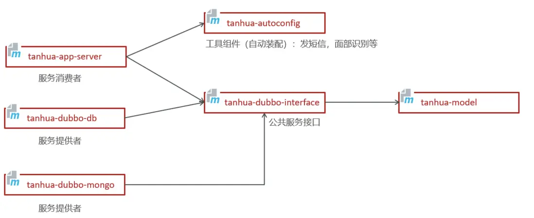 tanhua tanhua-dubbo Dubbo子模塊(可以理解為文件夾,管理Dubbo模塊)
