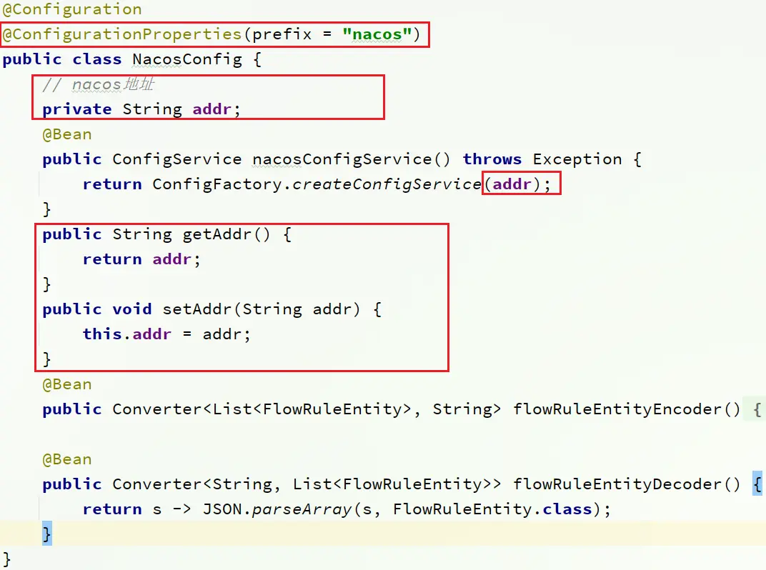 修改其中的nacos地址,讓其讀取application.properties中的配置: