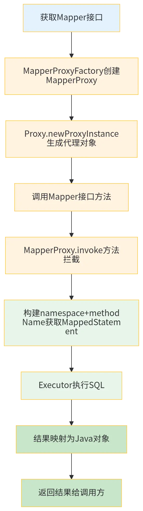 - Mapper代理的核心是JDK動態代理,將接口方法調用轉化為SQL執行;