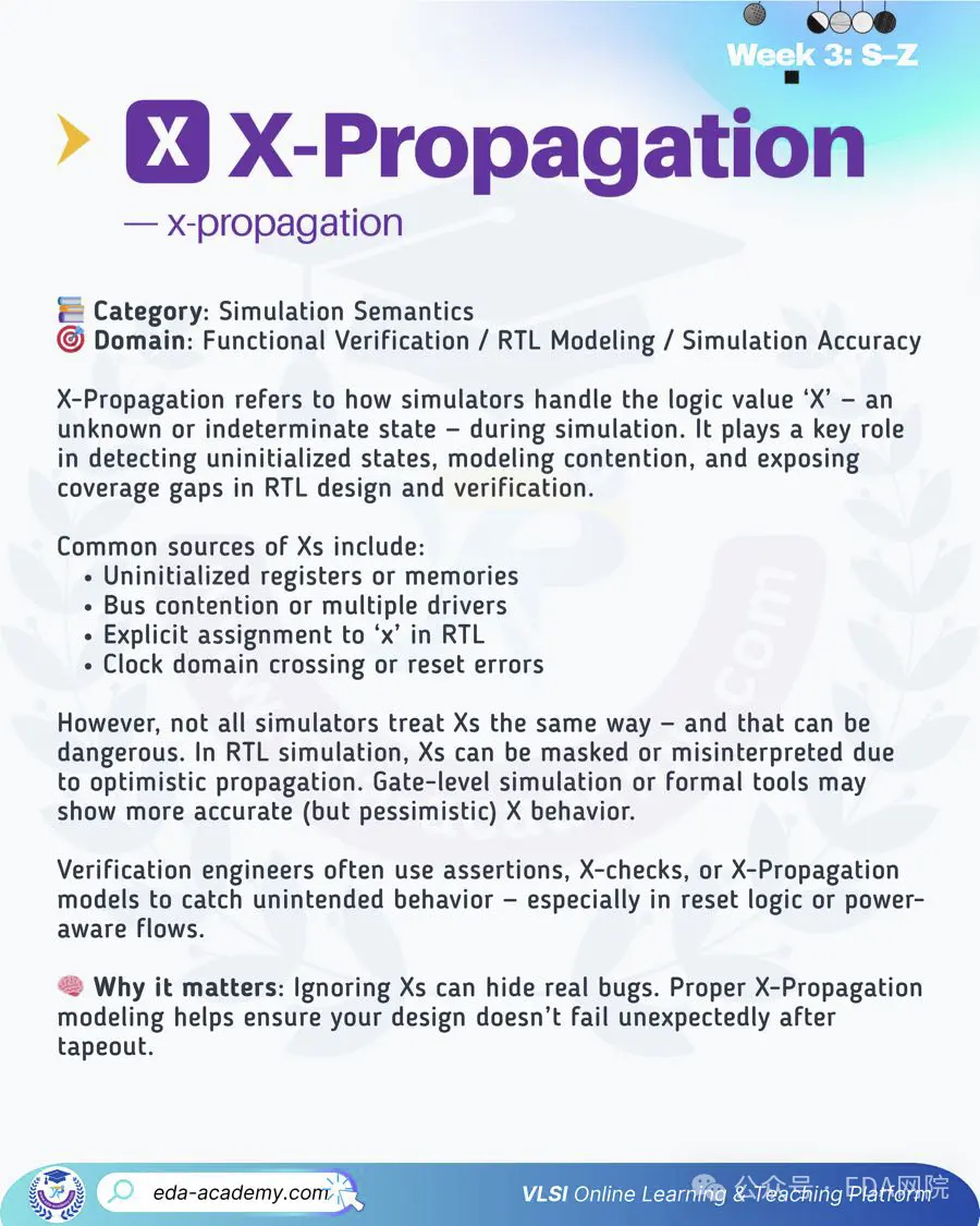 • X-Propagation:X 擴散常常暴露隱藏 bug,是仿真不容忽視的信號。