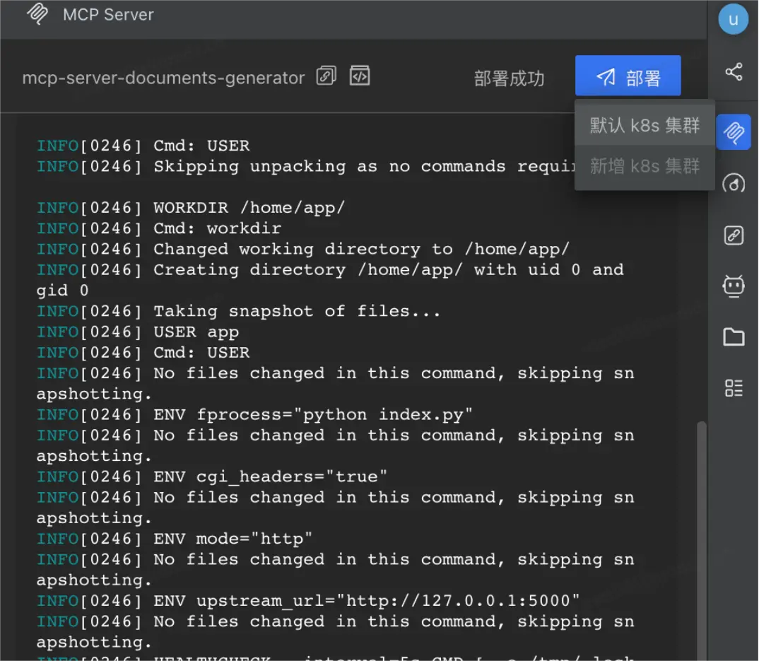 但我自覺技術一流,直接一鍵把開發好的MCP Server部署在我的K8s裏,直接生產上線: