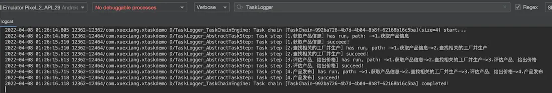 2.XTask遵循的是面向對象的編程原則,設計之初就嚴格遵循面向對象的設計模式原則。充分減少業務與業務、業務與數據流之間的耦合,這樣即使你的數據結構或者業務流程出現重大的變化,主幹代碼也不會有很大的變動。而且XTask擁有較強的日誌記錄系統,能夠非常清晰的記錄你當前任務鏈的執行過程和所在線程的信息(自動的),當任務執行出現問題的時候,便能很快地定位出問題產生的位置。而對於初入項目的開發人員來説,也能快速從任務執行過程的日誌中去理解項目的主體業務。待主體業務流程有了清楚的認知後再去仔細看子業務,這樣才能全方位理解項目的業務,也更利於項目的維護。