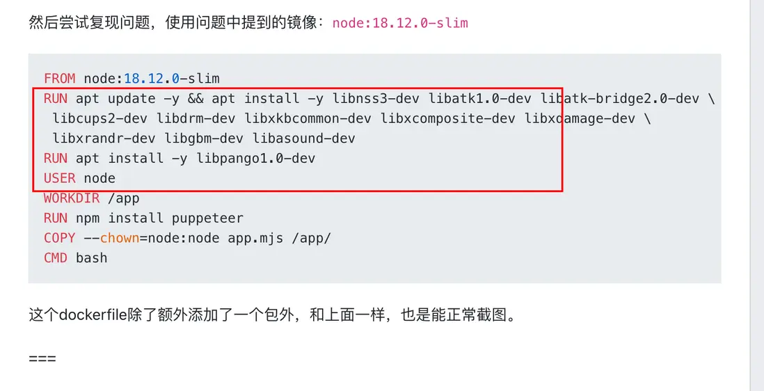 如何基於官方的Puppeteer鏡像再構建不同的鏡像文檔並沒有描述,所以我提交第二個問題並提出我的一些想法看可行性。