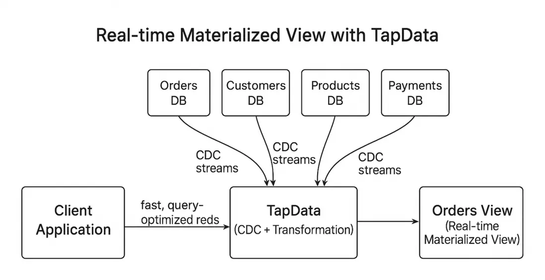 在 TapData 中,這一機制通過跨源 CDC 和實時計算自動完成,確保視圖在秒級內更新,並實時對下游開放。