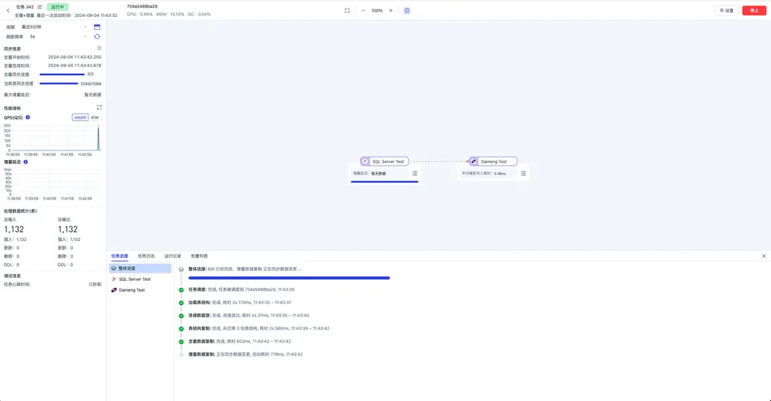 1. 啓動任務,任務全量同步正常運行: