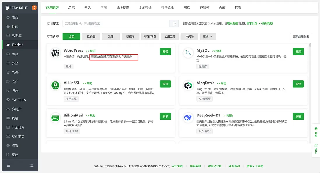 - 第三方鏡像服務:如Websoft9、寶塔面板、1Panel