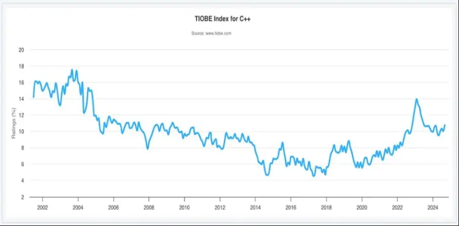 ↑ 隨時間變化的TIOBE流行度指數-C++