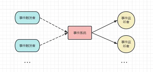 事件的觸發者將事件發送給事件系統,事件系統再將事件的發生轉發給各個監聽者。事件的觸發者不需要關注誰監聽了該事件,而事件的監聽者也不需要關注誰觸發的該事件,雙方都只需要關注自己的業務即可。