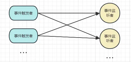 從上圖可以發現,不管是事件的觸發者,還是事件的監聽者,都從原本的需要跟多個模塊進行依賴,到只需要依賴事件系統即可。