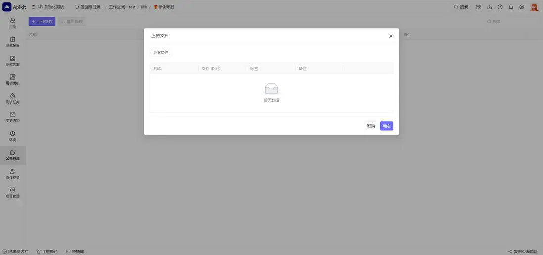 在 APIkit 的私有云版本中,提供了測試文件庫功能。不過目前該功能僅供私有云產品,線上SaaS產品不提供測試文件庫功能