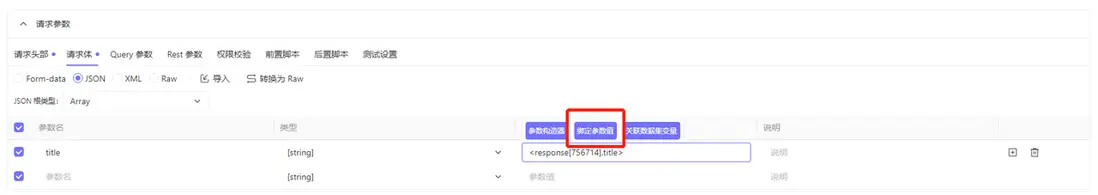 在API2中可以引用API1中設置的返回參數,點擊綁定參數值