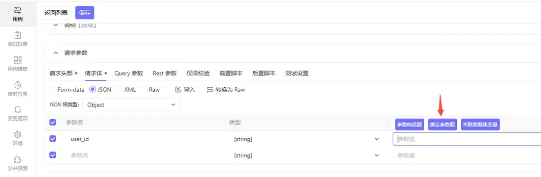 在API2中可以引用API1中設置的返回參數,點擊綁定參數值在API2中可以引用API1中設置的返回參數,點擊綁定參數值