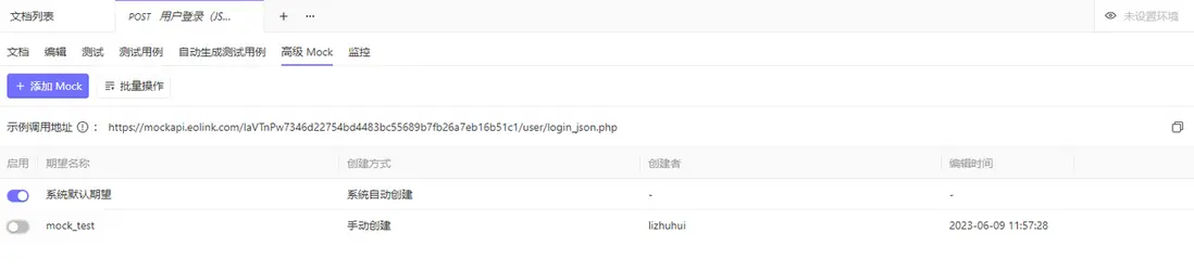 一個API文檔中無論設置了多少條高級Mock,均僅有一個高級Mock調用地址。用户在調用時,根據請求的內容判斷觸發了哪一條的高級Mock設置,並返回對應高級Mock的返回結果。