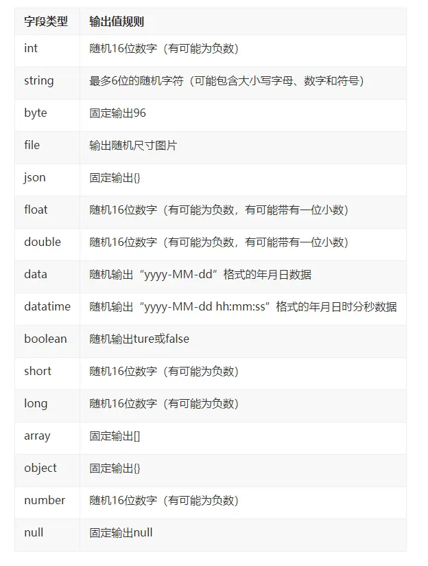 若未設置Mock字段,且未設置示例字段,則輸出系統默認兜底規則: