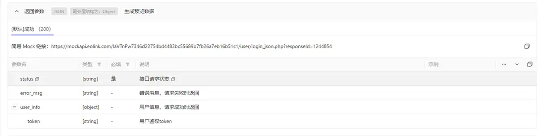 如果用户僅需要快速的基於接口文檔中的返回結果獲取對應的隨機數據,則可以通過簡易Mock功能獲取對應信息。