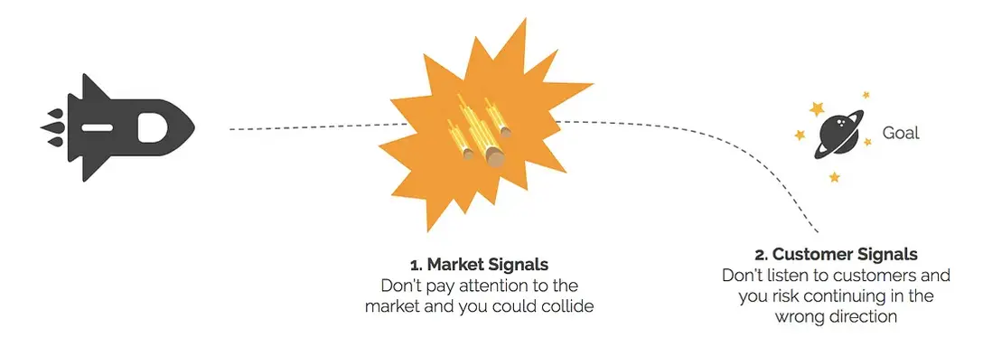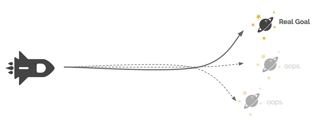大多數計劃起初都朝着目標直線前進,但實際路徑卻並非如此。既不可能預見到前方所有障礙,有時目標又太過遙遠,以至於無法總是確定自己是否偏離了方向。為了避免這種情況,產品經理必須傾聽外部環境,以發現、預測並修正路徑。