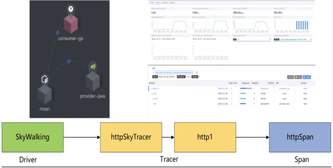調用依賴以及服務與服務之的調用狀態是微服務管理中一個重指標,MOSN 通過和 Skywalking 合作,集成 Skywalking 底層的 SDK,實現調用鏈路拓撲展示、QPS 監控、細粒度 RT 展示。未來,我們也會朝着 Dubbo Tracing 支持方向持續演進。
