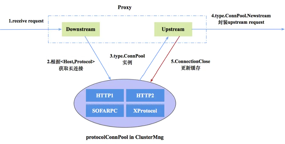MOSN 為了降低 Runtime GC 帶來的卡頓,自身做了內存池的封裝,方便多種對象高效的複用內存。為了提升服務網格之間的建連能力,我們設計封裝了多種協議的連接池,方便的實現連接複用及管理。