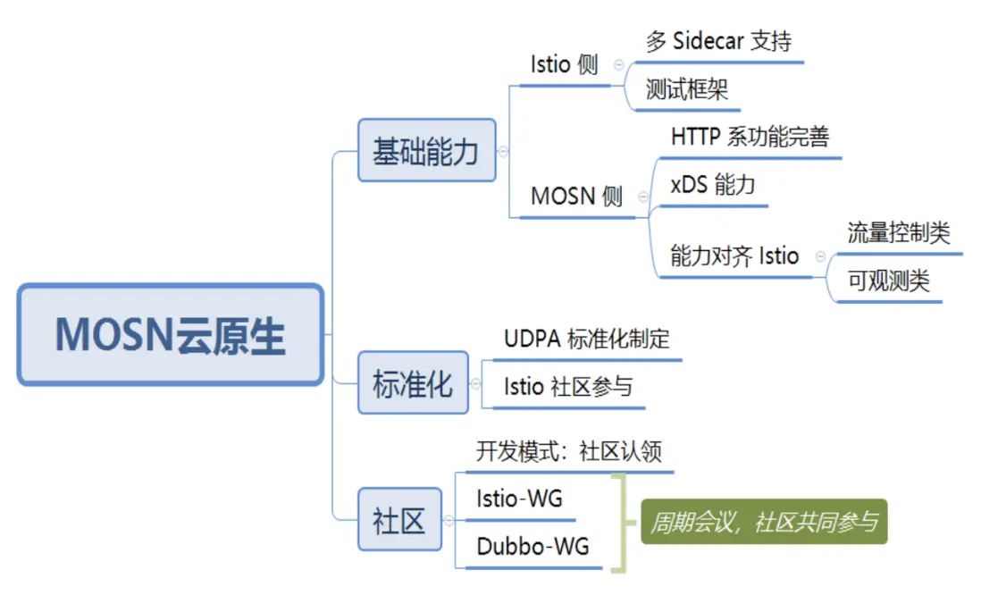 成為雲原生標準 Sidecar 是我們為 MOSN 定的目標,為此我們成立了 Istio、MOSN、Dubbo 相關的 Working Group,讓社區更多的開發工作人員參與進來。
