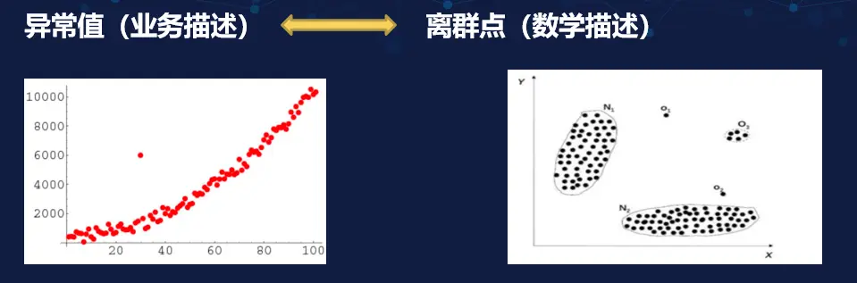 對於異常值而言,從數學上看可以看做一個離羣點。當然在實際業務中,考慮到業務的結合情況不同,有些異常值看似是離羣點,但是從全局業務上看也可能是一個正常值。具體情況需要結合結果來分析,不過我們大致可以使用離羣點來代表異常值。