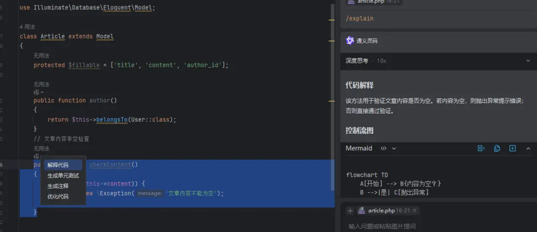 通義靈碼作為一款智能編碼助手,為 Laravel 開發提供了全方位的輔助功能。