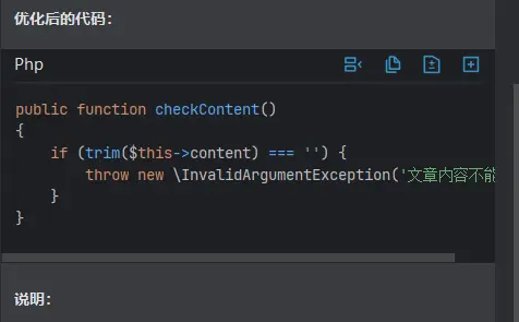 它會根據代碼的邏輯結構、性能瓶頸等方面提出優化建議,如改進算法、調整 SQL 語句結構、增加索引等,從而提高代碼的執行效率和質量。
