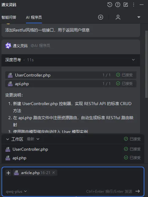 Laravel 使用通義靈碼 - AI 輔助開發提升效率 - 動態 詳情
