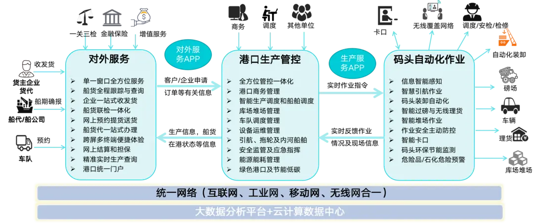 - 港口對外服務:在該平台完成全部港外物流、港內物流、通關、交易、貨運自動化、行政服務等相關港口業務辦理。