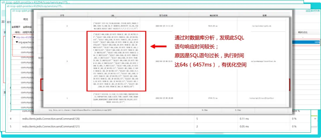 系統性能分析方面,雲智慧基於端到端的服務請求鏈路細化追蹤、分析代碼及SQL執⾏性能,提供了應用拓撲及代碼層事務追蹤。針對單次請求,雲智慧通過基本信息和業務拓撲發現潛在問題,追蹤慢元素和堆棧詳情,分析錯誤和異常信息及堆棧,以及分析SQL語句、API調用與請求參數等執行情況。