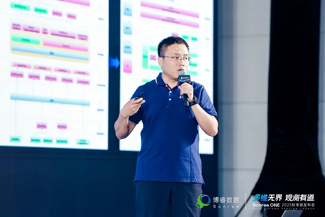 博睿數據產品總監賀安輝正式發佈Bonree ONE 2025 秋季版,圍繞AI深度融合、全面多維觀測、架構突破升級三大維度展開。