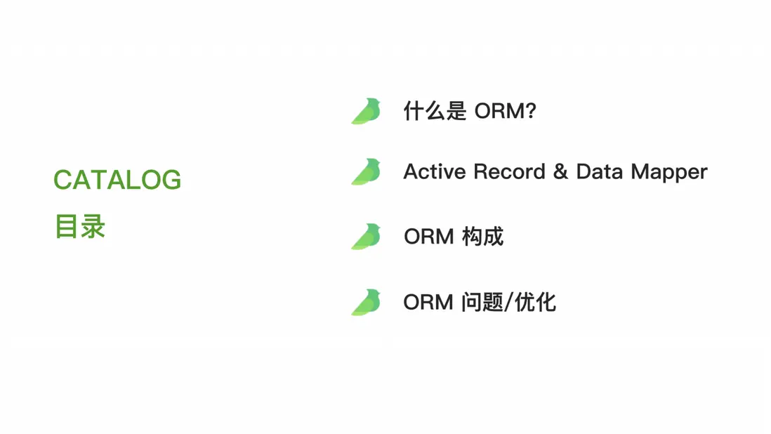 接下來介紹兩種常見的 ORM 模式:Active Record 和 Data Mapper。Active Record 翻譯成中文就是主動記錄模式,是一種架構模式。之前展示的 ORM 是 Active Record 模式的。