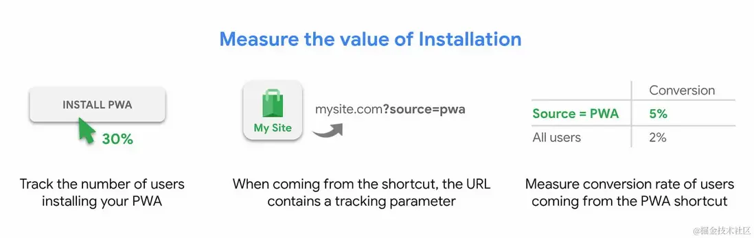 為了知道哪些用户安裝了,你可以去監聽 appinstalled 的事件。也可以用js api去檢測當前是否是standalone窗口(這表明是從桌面圖標打開的)。然後用這些數據做更詳細的分析。