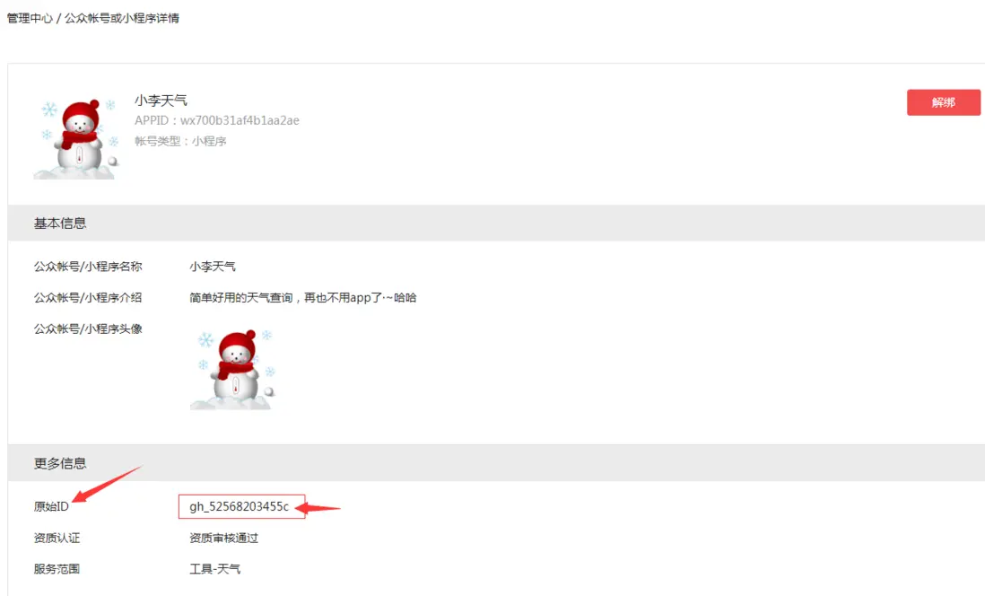 綁定完之後點擊查看如下圖所示可以看到原始ID,這個後面分享會用到;