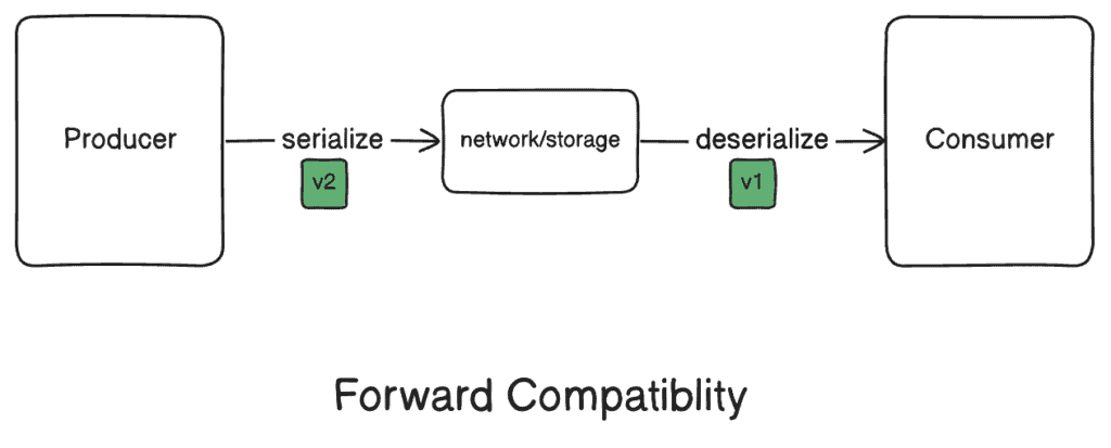 向前兼容性意味着舊代碼可以讀取由新代碼寫入的數據。 這要求舊版本正確地反序列化由新方案版本序列化的數據。