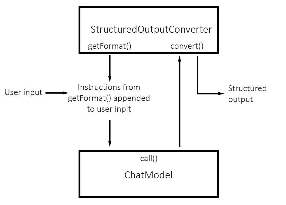 在 call() 返回響應後,轉換器會將它解析為類型 T 的所需數據結構。以下是 StructuredOutputConverter 的簡單流程圖: