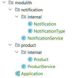 Method <com.baeldung.modulith.product.ProductService.create(com.baeldung.modulith.product.internal.Product)> calls constructor <com.baeldung.modulith.notification.internal.Notification.<init>(java.util.Date, com.baeldung.modulith.notification.internal.NotificationType, java.lang.String)> in (ProductService.java:25)