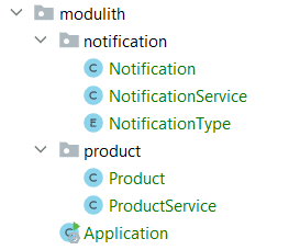 在上一部分中,我們已將 通知模塊的 API 注入到 產品模塊中。但是,Spring Modulith 鼓勵使用 Spring Framework 應用程序事件進行模塊間通信。為了使應用程序模塊儘可能地解耦,我們使用事件發佈和消費作為主要的交互方式。