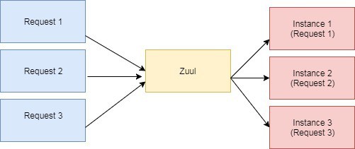 在這裏,我們可以看到 Zuul 如何封裝了相同服務的三個不同實例: