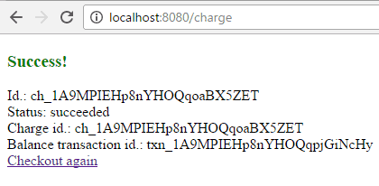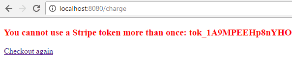 </form>“checkout.js”腳本在提交之前自動向 Stripe 發起請求,然後將 Stripe 令牌和 Stripe 用户電子郵件作為隱藏字段“stripeToken”和“stripeEmail”附加。