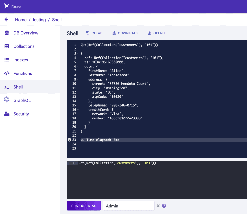 Fauna 提供兩種不同的方式來從外部讀取和寫入數據庫中的數據:FQL 驅動程序和 GraphQL API。 此外,我們還可以訪問 Fauna Shell,它允許我們在 Web UI 中執行任意命令。