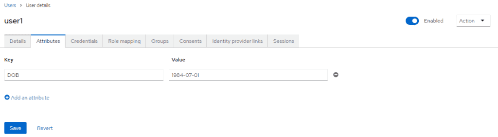 為了將屬性 DOB 添加到用户 [email protected] 中,首先我們需要配置其屬性: