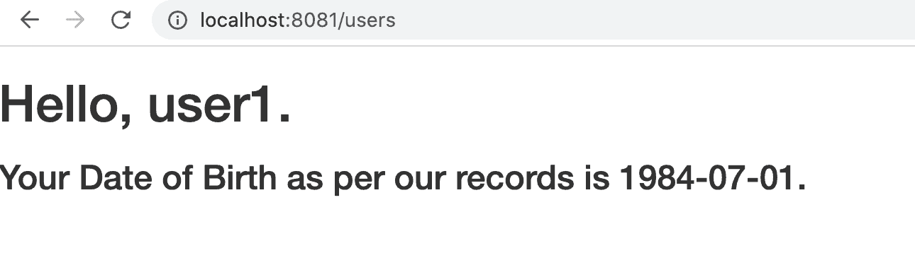 <h3>Your Date of Birth as per our records is <span th:text="${dob}"/>.</h3>