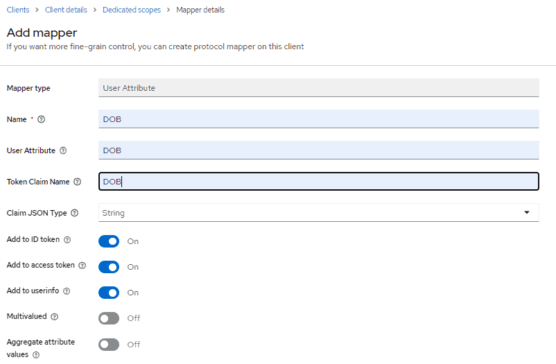 點擊“保存”後,我們的映射已就緒。 因此,我們現在可以從 Keycloak 端接收 DOB 作為自定義用户屬性。
