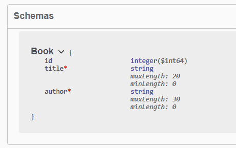例如,如果我們將一個 `Book</em/> 對象傳遞給我們的 API 以創建或更新書籍,我們可以對請求體進行標註以進行文檔記錄: