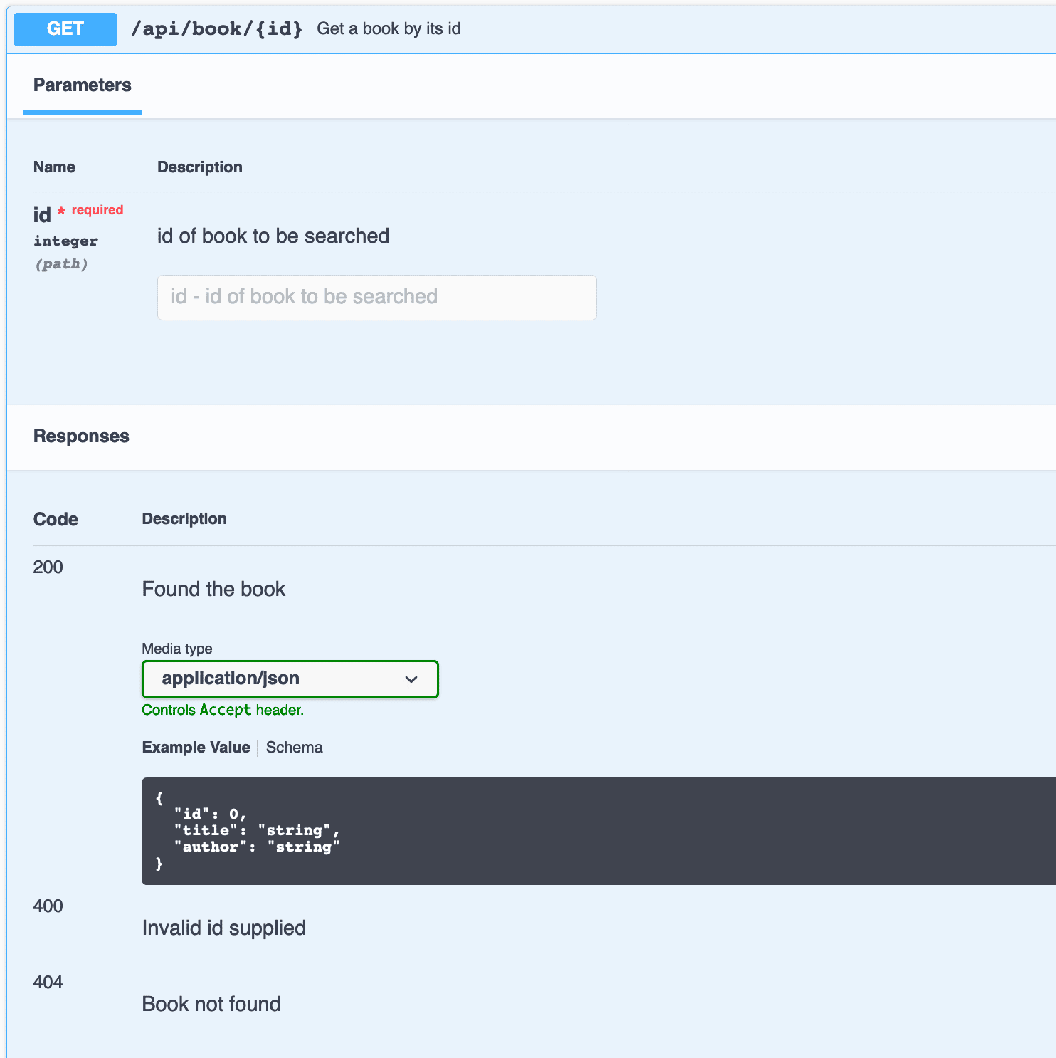 要做到這一點,我們將使用 @Operation 和 @ApiResponses 註解來標註控制器的 /api/book/{id} 端點: