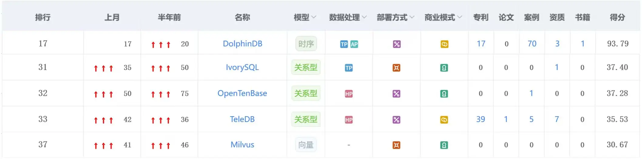 在當前數據庫技術快速迭代與市場競爭日益激烈的背景下,除了榜單前十的頭部產品外,一批數據庫憑藉技術創新、生態建設與行業適配能力,實現了排名的顯著上升,成為數據庫領域不可忽視的成長力量。它們在不同細分領域展現出獨特優勢,有的深耕向量數據庫賽道,有的聚焦企業級分佈式架構,有的發力開源生態與兼容性升級。