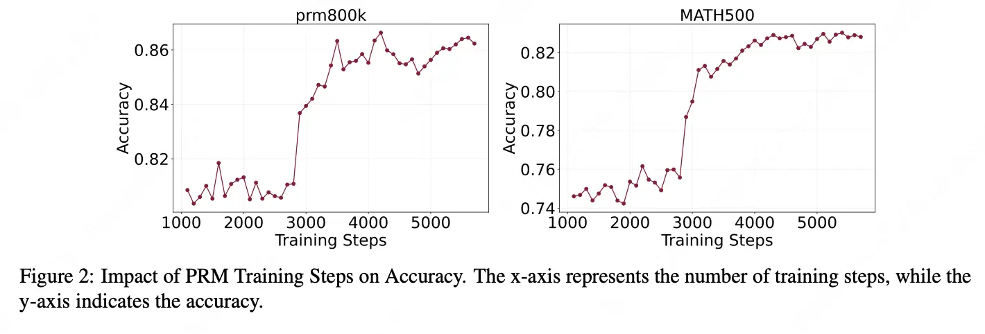 - 訓練計算資源的影響:研究發現隨着PRM模型規模的增大,性能提升呈現邊際遞減效應,強調了在模型規模和計算成本之間尋找平衡的重要性。同時,訓練數據集的多樣性顯著影響PRM性能,作者提出的ASLAF(自動步驟級標註與過濾)方法在多個基準測試中表現優異。